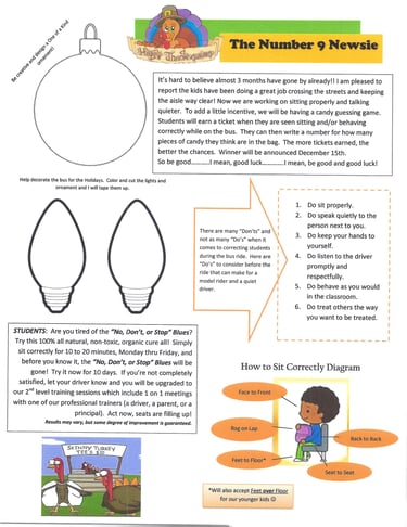 In efforts to help with student rider behavior on the bus, and in conjunction with Ohio's Positive Behavioral Interventions and Supports (PBIS) program, I created a Newsletter for my bus riders.